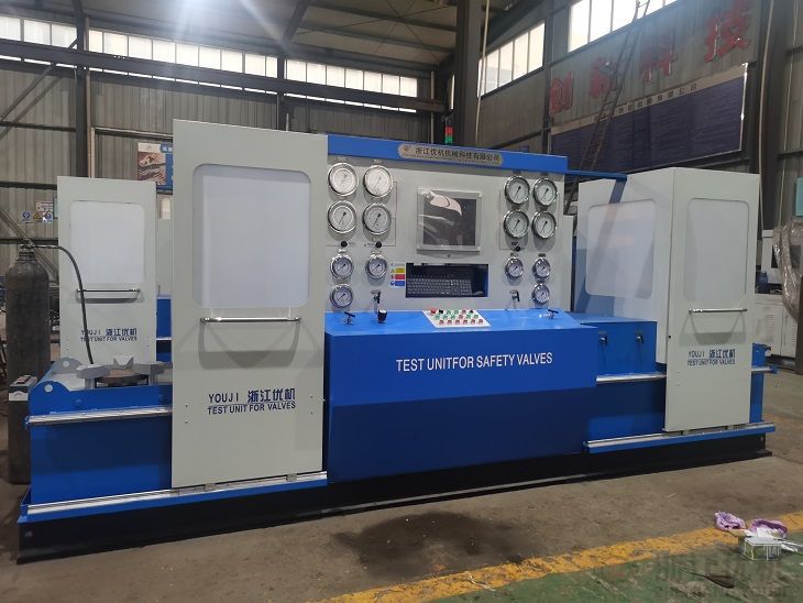 JLA型安全閥性能校驗臺是我公司科技人員按照國家GB/T1 3927—92和ZBJl6006—90有關標準要求參照國外同類產品之優點,結合我們多年生產閥門檢測設備技術經驗基礎上,自行成功研制國內首臺JLA型安全閥性能測試。JLA型閥門液壓試壓機是我公司在積累多年生產閥門檢測設備技術的基礎上按照國家GB/T1 3927 — 92《通用閥門壓力試驗》和ZBJl6006-90《閥門的試驗與檢測》的標準規范要求,是公司自主研發的安全閥試驗臺并擁有國家技術專利知識產權,專利號ZL2016 1 0240324.1。該校驗臺省去了原傳統的大竄容積的高壓畜氣罐,只需配備普通的0.6MPa空壓氣泵氣源。經過本機會自動進行調節0.6-32.0MPa氣體介質試驗壓力。適用于公稱通徑DNl 5~300mm安全閥的整定、啟閉、回座壓