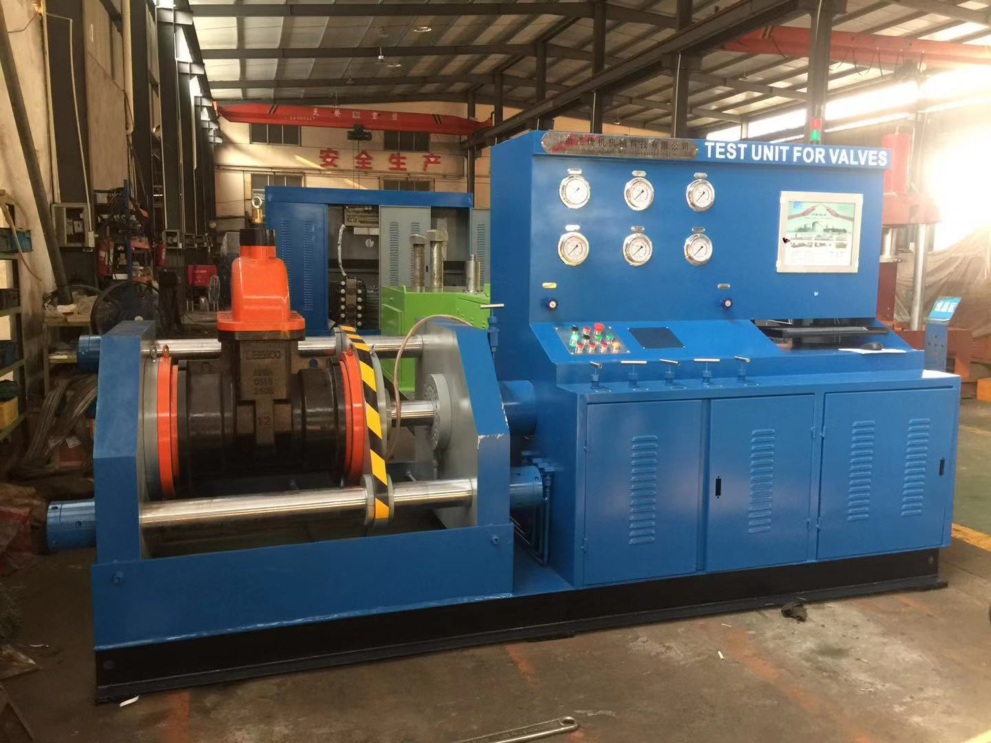 JWT型頂壓式閥門試驗臺是我公司在多年生產(chǎn)閥門檢測設備經(jīng)驗的基礎上自主研發(fā)的新一代頂壓式閥門測試臺并擁有國家技術(shù)專利知識產(chǎn)權(quán),專利號ZL2016 1 0240324.1.專為解決閥門制造廠、閥門使用等單位對無法蘭式<J61、J63、Z61>等閥門和法蘭式各種類閥門能在一機上進行檢測試驗的要求,按照《通用閥門的壓力試驗》和《閥門的試驗與檢測》的標準規(guī)范要求。本機集液壓、機電、試壓及液體介質(zhì)貯存循環(huán)使用于一體,具有結(jié)構(gòu)合理、功能完善、操作方便等特點,廣泛用于公稱通徑DNl5-800mm各類高中低壓閥門的強度和密封。性能試驗。最高密封試驗壓力32.0MPa,強度試驗48.0MPa。本設備廣泛用于閥門制造業(yè)和石油、石化、核電、化工等使用、閥門維修部門等單位的一種先進理想的閥門檢測設備,主要用于閥門強度試驗和閥門密封試驗。